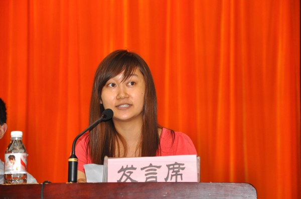 经济与贸易系2009级市场营销3班聂佳慧同学作为老生代表发言