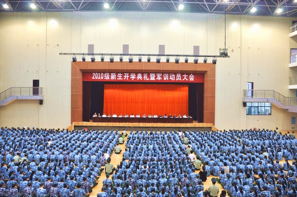 9月3日上午8:30,2010级新生开学典礼暨军训动员大会在学院体育馆隆重召开。学院党委书记彭建国、院长张新民、军训团长彭勇、党委副书记孔军山、副院长张朴、林国安、杨文涛、西城后勤服务公司经理吴耀波及综合办公室、教务处、学工处、招生就业处、后勤资产处及教学系部等部门负责人出席了本次大会。学院党委副书记孔军山主持大会。