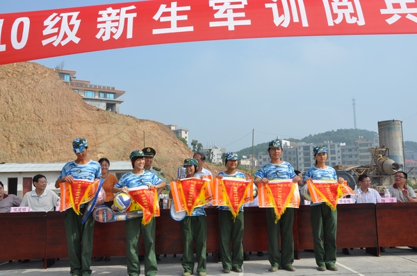 随着激昂的检阅进行曲响起,张新民院长在军训团团长彭勇的陪同下,对各连队进行了检阅。随后,军训团政委、学院副院长张朴对此次军训作总结报告。他说,短短十天的训练,同学们按计划完成了军训任务,并取得了优异的成绩。在部队领导的高度重视,教官的严格施训及学院全体教师的辛勤指导下,同学们增强了组织纪律观念,规范了日常生活行为,并锻炼了坚强的意志,培养了吃苦耐劳的精神。通过军训,同学们对部队生活有了初步了解,在心目中树立了人民军队良好的形象。更重要的是军训融洽了同学之间的感情,增强了团结意识和集体荣誉感。同时,他也指出了本次军训中同学们的不足之处,并希望同学们能在以后的学习生活中予以克服。最后,他对2010级新生寄予厚望,希望他们将军训中培养的军人品质和团队精神带到以后的学习、工作和生活中去,成长为不怕苦、不怕累、敢于克服一切艰难险阻的坚强战士。