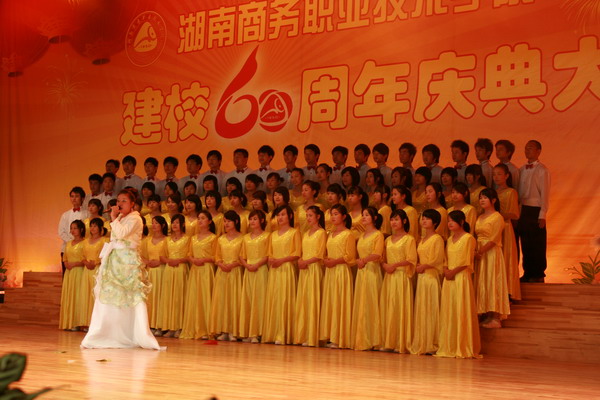 (记者 郑彬彬 王思贤等)2010年11月20日上午10时40分,校庆六十周年文艺汇演在学院体育馆隆重举行。此次汇演出由邓艳君、刘智群两位老师担任主持,部分嘉宾、历届校友代表以及学院部分领导、老师和学生观赏了本次演出。