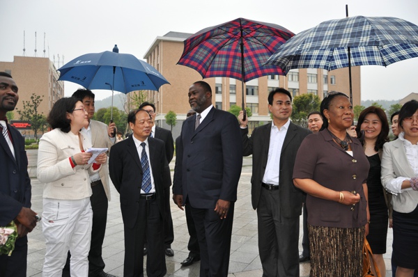 2011年4月16日下午,加纳共和国英联邦电信组织( CEO)Ekwow Spio-Garbrah博士一行莅临我院,学院大门口,我院学生用鲜花迎接远道而来的加纳国朋友。