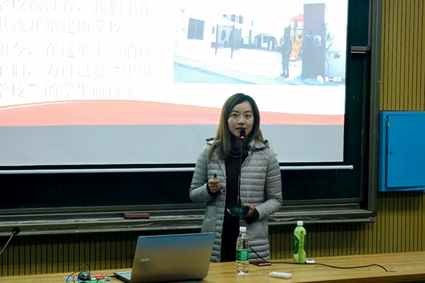 12月28日的报告会上,人文旅游学院毛艳老师与经贸学院辅导员白丹妮老师对十九大精神进行了宣讲。毛艳老师主要以“中国特色社会主义是天下大道”为主题,从中国外交的大道之行、中国治理的大道之行、中国学生的学习之道三个方面进行了深入浅出的解读。她指出:“哪有什么岁月静好,只不过是有人为你负重前行。”随后,白丹妮老师以“实现中国梦 青年勇担当”为主题,阐释了大学生应该怎样“教育梦”助力“中国梦”、“个人梦”融入“教育梦”、“个人梦”依托“报国梦”。白丹妮老师表示,大学生一定要牢记习近平主席的讲话,面向未来,面对挑战,不忘初心、继续前进,努力为中国梦的实现添砖加瓦。