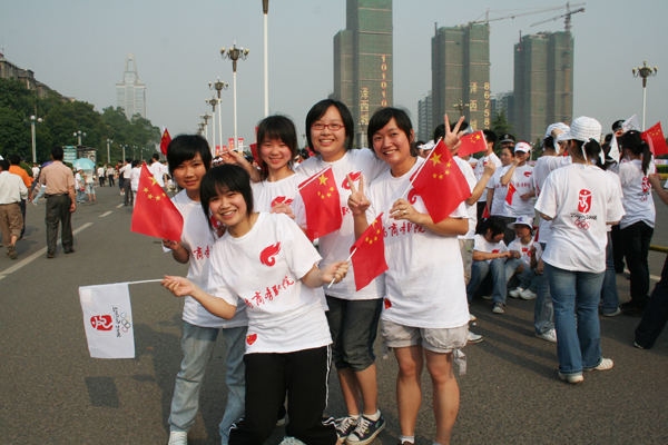 在本次迎接圣火传递的活动中,商务学子们表现了自己心系奥运的爱国热情。9:20分,随着一辆接一辆的彩车从岳麓大道上驶过,我院学子们的欢呼声也一浪高过一浪,“中国加油!北京加油!奥运加油!……”,记者现场深切地感受到了同学们那一颗颗火热的爱国心。当火炬手出现在大家面前的时候,现场气氛达到了高潮,“太激动了!”很多同学这样说道。虽然天气炎热,很辛苦,但同学们都感到很值得。此刻,千言万语汇成一句话:祝我们伟大的祖国强盛,祝北京奥运会取得圆满成功!