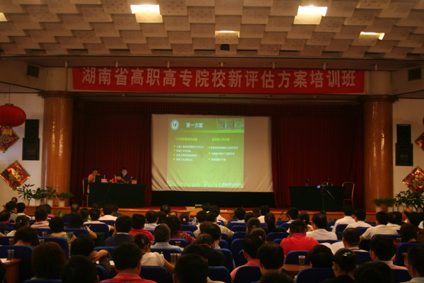 2008年8月18、19日,由省教育厅主办,我院和湖南高职教育教学管理研究会承办的湖南省高职高专院校新评估方案培训班在长沙市留芳宾馆开班??皇接墒〗逃俺纱τ辔傲几贝Τぶ鞒?教育厅王键副厅长、职成处张大伟处长出席开幕式并作重要讲话,高职教育教学管理研究会会长、我院院长张新民发表了热情洋溢的欢迎辞。来自全省各地的七十多所高职高专院校、成人高校的办公室主任、教务处处长、评建办主任及负责数据采集的技术人员近三百余人参加了培训。