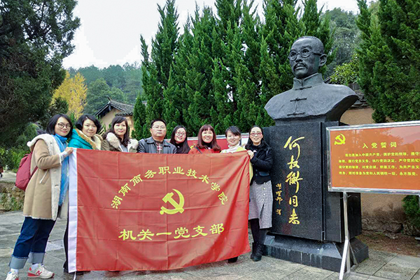 为了贯彻落实十九大精神,促进“两学一做”学习教育真正落到实处、收到实效,提高广大党员爱党爱国意识,充分发挥党员的先锋模范作用。11月25日,湖南商务职业技术学院机关一党支部赴宁乡沙田乡参观何叔衡故居,开展以“践行十九大,岗位争贡献,共筑中国梦”为主题的党员活动,重温入党誓词,理解共产党人“为中国人民谋幸福,为中华民族谋复兴”的初心和使命。