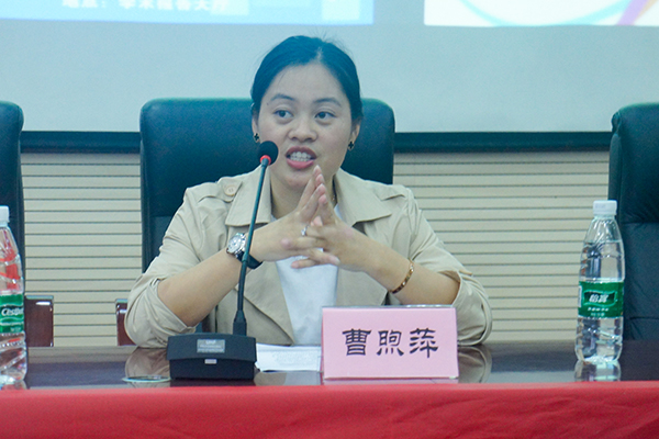 会上,曹煦萍结合自身实际,用通俗易懂的语言,向现场师生分享了自己的学习、工作和生活经历,讲述感人肺腑、催人奋进。在之后提问的环节中,曹煦萍热心解答了学弟学妹们提出的问题,她表示要调整好自己的心态,在校期间多参加实践活动,提前接触社会实际,保持一颗向上的心,把理论知识运用到工作之中融会贯通才有利于工作的开展。