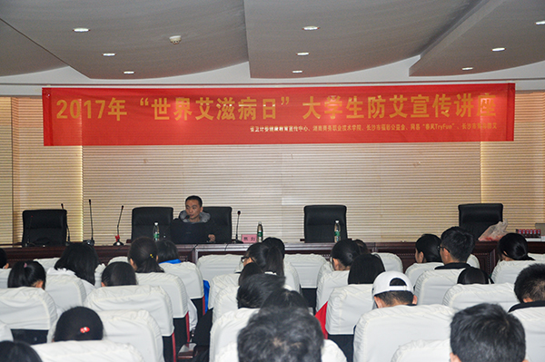在第30个世界艾滋病日(12月1日)来临之际,根据上级各部门的要求,11月28日下午,院团委和学工处在办公楼六楼职工会议室举办预防艾滋病知识宣传讲座。长沙市疾控中心传染病防控专家陈剑老师主讲,各二级学院学生代表300余人聆听了报告。