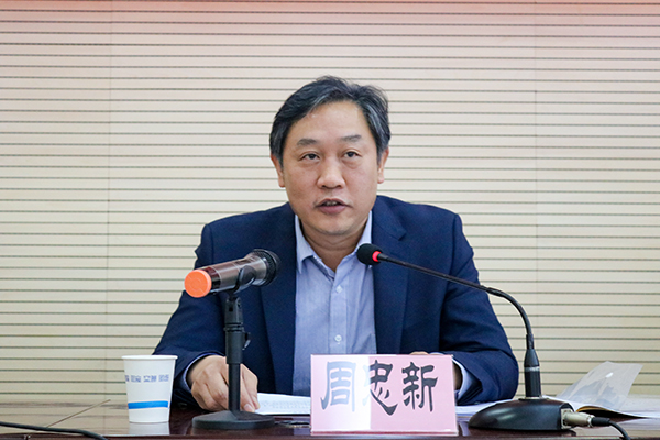学院党委书记周忠新作了《践行新思想 展现新面貌 争做新时代“四有”商务青年》的主题讲话