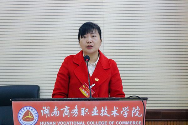 学工处处长唐柳荷代表共青团湖南商务职业技术学院第三届委员会向大会作工作报告