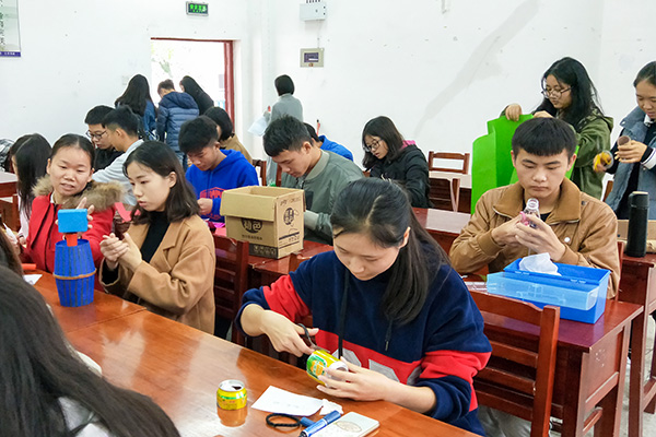 本次比赛共有21支队伍参赛,选手们需要在规定的30分钟内利用生活中的废旧物品制作出不同的工艺作品进行展示,每队派出一名代表上台对自己的作品进行介绍,阐述他们的创作思想,突出自身作品的环保理念,展示创新风采。