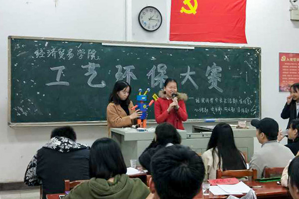 为了进一步贯彻“?;せ肪场⒌吞忌?rdquo;的理念,提高同学们的环保意识,丰富学生课余生活,11月15日中午12点,由经贸学院主办的“公益环保大赛”在二教101举行。