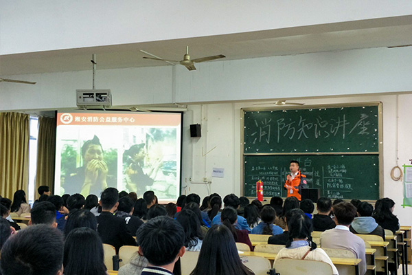 讲座上,刘跃武教官通过近期国内外发生的火灾案例,以案说法,阐述了消防安全的重要性及校园火灾防范的要点,并从消防安全基本常识、如何预防火灾,初起火灾的扑救方法,消防器材的使用方法等四个方面进行了精彩讲解。通过此次讲座,使同学们对校园火灾有了更深刻的认识,进一步增加了校园安全工作的责任感和紧迫感,巩固了校园安全工作成果,增强了师生员工安全意识。