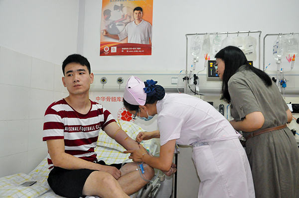 经过前期血液样本高分辨检验和体检后,6月19日至23日,陆先蜜在湘雅三医院进行着每天两针,早晚各一次的“皮下动员针”的注射,以唤醒造血中枢制造干细胞。尽管每次的皮下注射陆先蜜都要克服身体上的酸痛与不适,但他依然表现得很轻松,他说一定要为拯救鲜活的生命做出自己的努力。