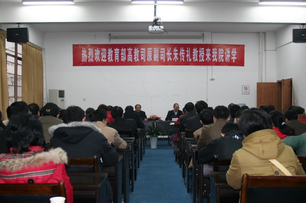 12月27日下午15:30,全国产学合作教育协会会长、教育部原高教司副司长朱传礼教授应我院邀请,在实训楼报告厅为我院全体中层干部、青年骨干教师、专业带头人就高职教育问题作了精彩讲座。学院党委书记彭建国、院长张新民、党委副书记孔军山、副院长张朴、杨文涛与大家一起听取了讲座。