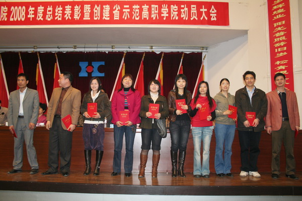 另外,在大会上吕逢铬副院长宣读了学院内设机构调整和新一届中层干部任免的通知;张朴副院长宣读了2008年度先进集体的表彰文件;林国安副院长宣读了2008年度先进个人的表彰文件;杨文涛副院长宣读了人才培养工作优秀等级评估先进集体和个人的表彰文件,并现场进行了颁奖。