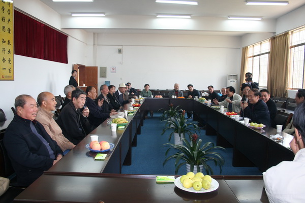 座谈会上,学院2002年升格以后的第一任院长郭清泉院长首先发言。郭院长对学院充满着深厚的感情,更充满了信心。他说学院拥有地理优势、内涵建设发展得不错,校园建设越来越漂亮,职工的福利、待遇在逐步提高,只要思路对了,齐心协力走下去,未来一定成功!其他已经离退休几十年的老领导们也都满怀着对学院的感情,为学院的发展出点子、出谋略。其中最年长的一位已经85岁高龄。大家有的提出学院要创立自己独特的品牌,有的提出学院设置专业应该要紧贴农村的发展,也有老校长认为学院教师的实践经验、实践技能很重要。