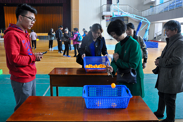 上午10:00,离退休职工参加了在体育馆举办的趣味运动会。此次趣味运动会共有定点投篮、沙包投准、钓鱼往返跑、投圈套物和快夹乒乓球5个比赛项目。比赛中,老同志们精神抖擞、兴致勃勃,在各个项目上大显身手。现场欢声笑语,加油声此起彼伏。活动丰富了退休教职工的晚年生活,让大家享受了运动的快乐。(校报记者/田梦、摄影/李江冬)