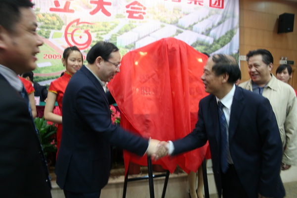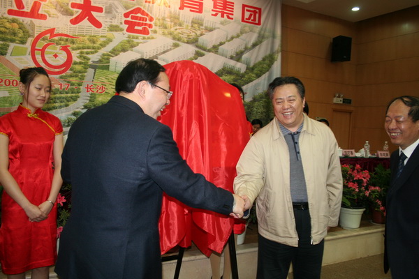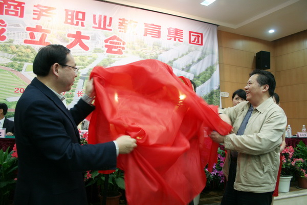 湖南省委梅克保副书记、省人大常委会党组成员、省政府顾问唐之享为“湖南现代商务职业教育集团”揭牌完毕