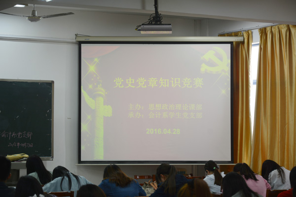 为更好地促进学生党员和入党积极分子学习党史党章,提高学生党员和入党积极分子的党性意识,4月28日12:30,学院思政课部联合会计学院在二教举办了“青春知党章 • 红色中国梦”党史党章知识竞赛活动,共有会计学院在校党员、入党积极分子198人参加了本次竞赛。