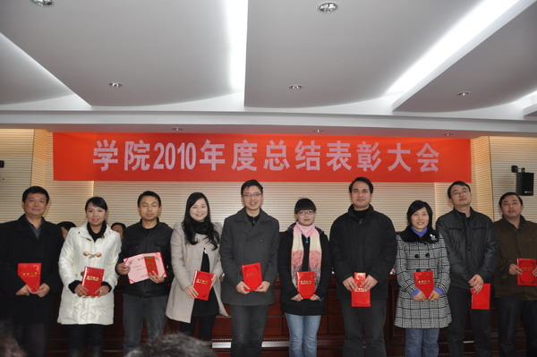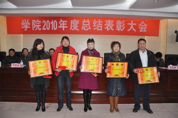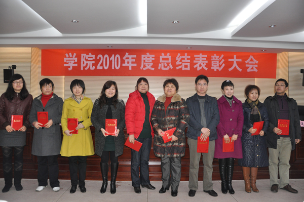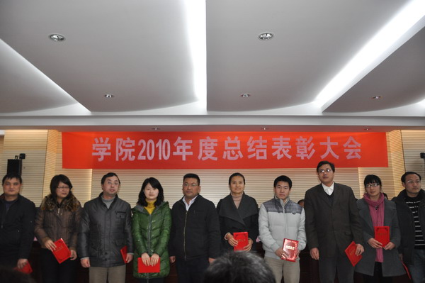 学院纪委书记郑佳生通报了2010年度工作人员考核结果。吕逢铬副院长宣读了学院2010年度表彰文件,共评选出人文与旅游系、会计系、纪检监审室、招生就业处、科研产业处5个年度先进集体及59名年度先进个人,并现场进行了颁奖。