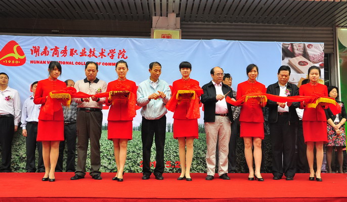 依照“对接产业、融入行业、提升质量、打造特色”的要求,5月24日上午,我院与湖南省茶业有限公司、湖南省银华棉麻集团股份公司、湖南省供销电子商务有限公司、湖南春华生物科技有限公司在学院校园内联合建造的农产品营销实训基地正式开业。