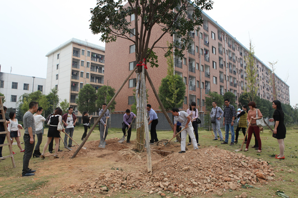 2002届财大一、二班的校友们还借此次毕业10周年返校的机会,在新校区栽种了一棵象征友谊的杜英树,既代表了他们之间深厚的同学情谊,也代表了他们对心系母校的情怀,希望学院不断发展壮大,枝繁叶茂,桃李满天下。
