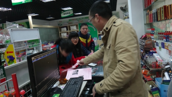志愿者们向商店老板们说明来意,宣扬爱心(二)
