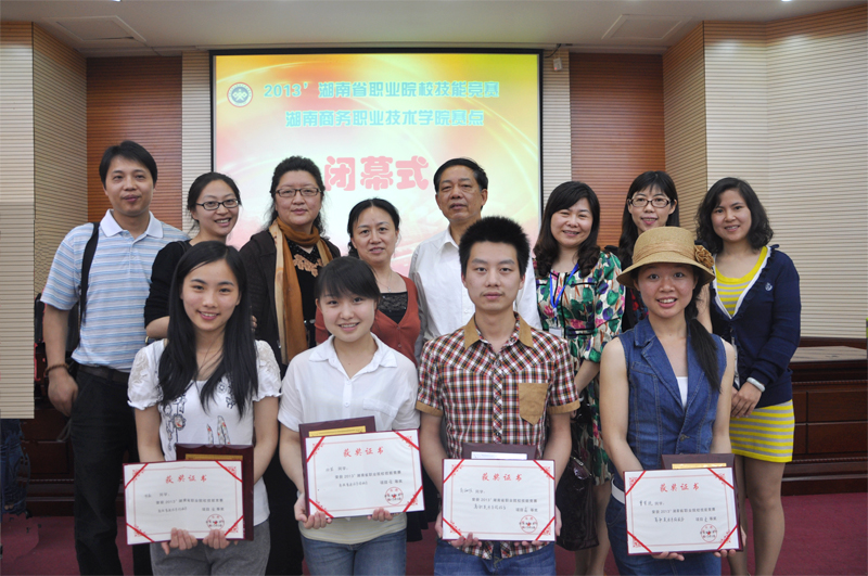 在长沙民政职院赛点进行的“会计技能”、“英语(专业组与非专业组)”、“计算机网络应用”项目赛中,获得3个一等奖、1个二等奖。 在湖南工程职业技术学院赛点举行的“中餐主体宴会设计”、“西式宴会服务”项目中,由我院罗霞、赵科峰老师指导的朱斓等5名选手,获得该项目3个二等奖、2个三等奖。