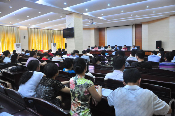 5月28日,阳光灿烂。省供销合作总社理事会主任曾振亚、监事会主任刘荣宗陪同省委组织部干部四处处长张宏益、省教育工委组织部部长蒋明等领导来我院宣布省委关于学院院长的任命决定。省社办公室、人事处负责人、学院中层以上干部及副高以上职称教师参加了会议?;嵋橛裳г旱澄榧侵苤倚轮鞒帧?/p>