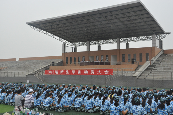 9月2日上午8:30,2013级新生军训动员大会在田径场隆重举行。国防科技大学指挥军官基础教育学院学员三大队蔡学武上校,军训团政委、学院张朴副院长,军训团团长、国防科技大学指挥军官基础教育学院三大队李伟中尉,军训团副政委、学工处唐柳荷处长以及各系党总支书记、副书记出席大会。大会由唐柳荷处长主持。