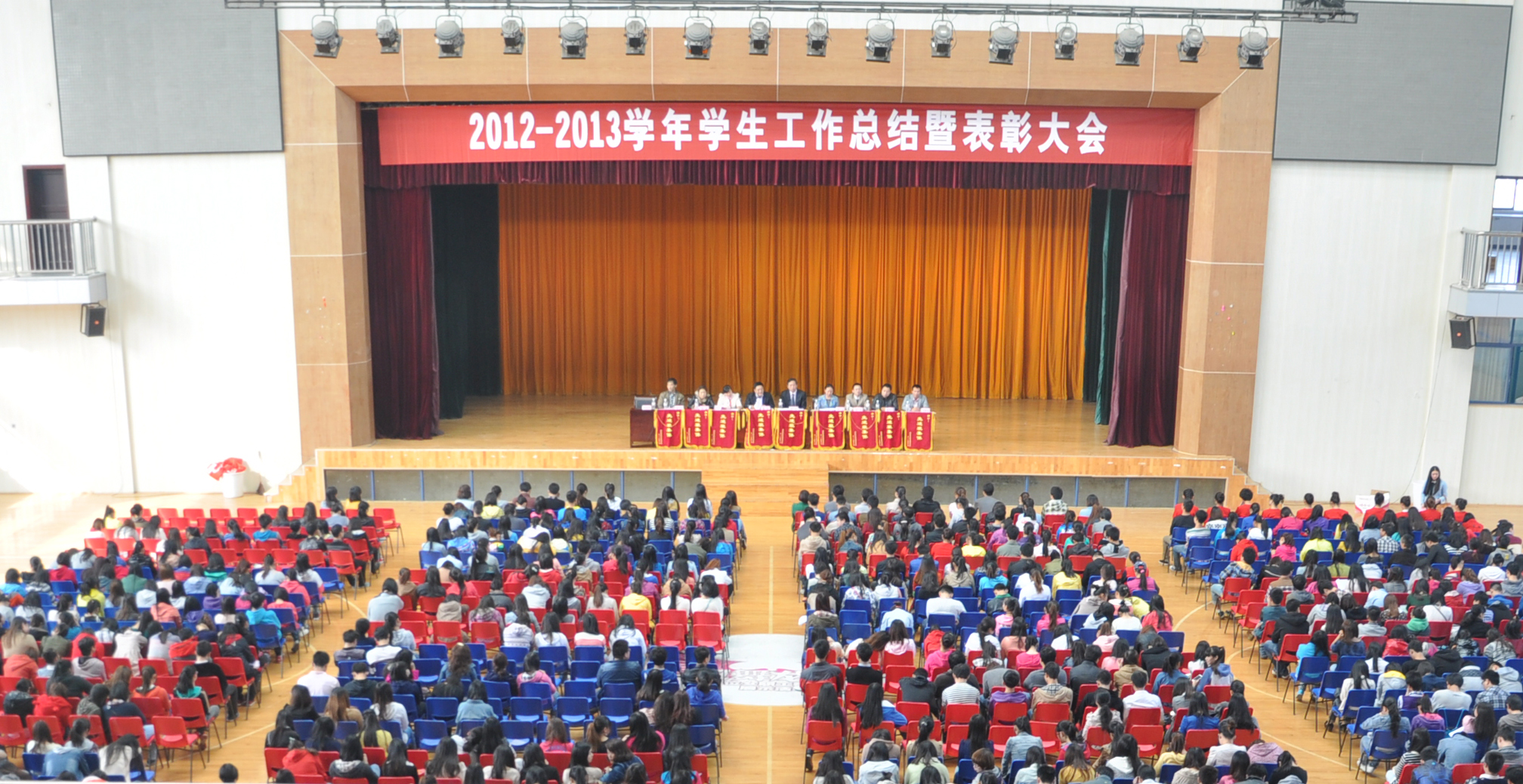 11月5日下午2:30,学院在体育馆隆重举行2012-2013学年学生工作总结表彰大会。出席此次大会的领导有学院党委书记周忠新,副院长张朴、杨文涛,学工处处长唐柳荷及各系党总支书记、副书记。学院各系先进班集体、优秀班干部、三好学生及奖学金获得者参加了大会。学工处处长唐柳荷主持大会。