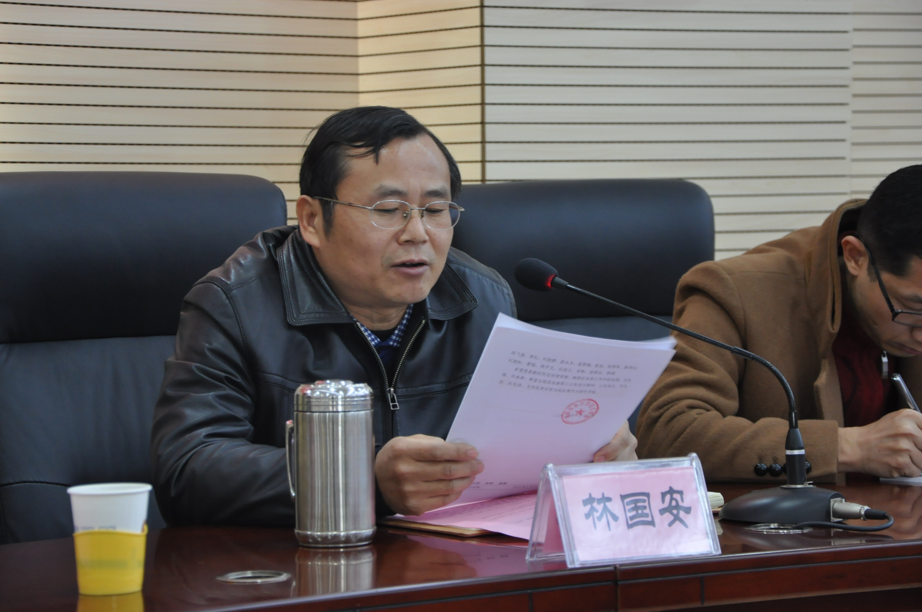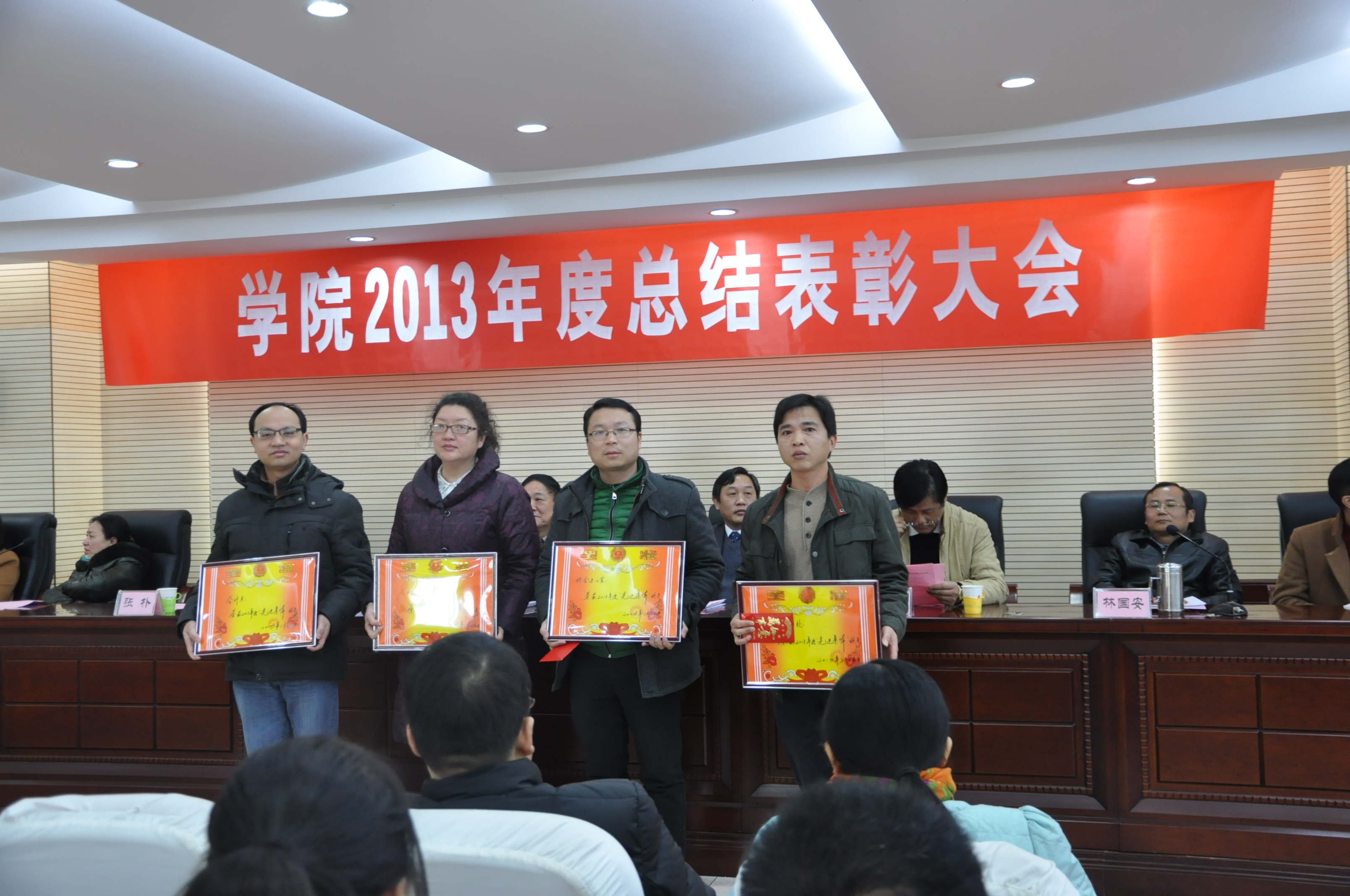 纪委书记林国安通报了学院2013年度工作人员考核结果;宣读了先进集体、先进个人表彰文件,共评选出会计系、人文与旅游系、组织人事处、综合办公室4个年度先进集体和63名年度先进个人并现场颁奖。