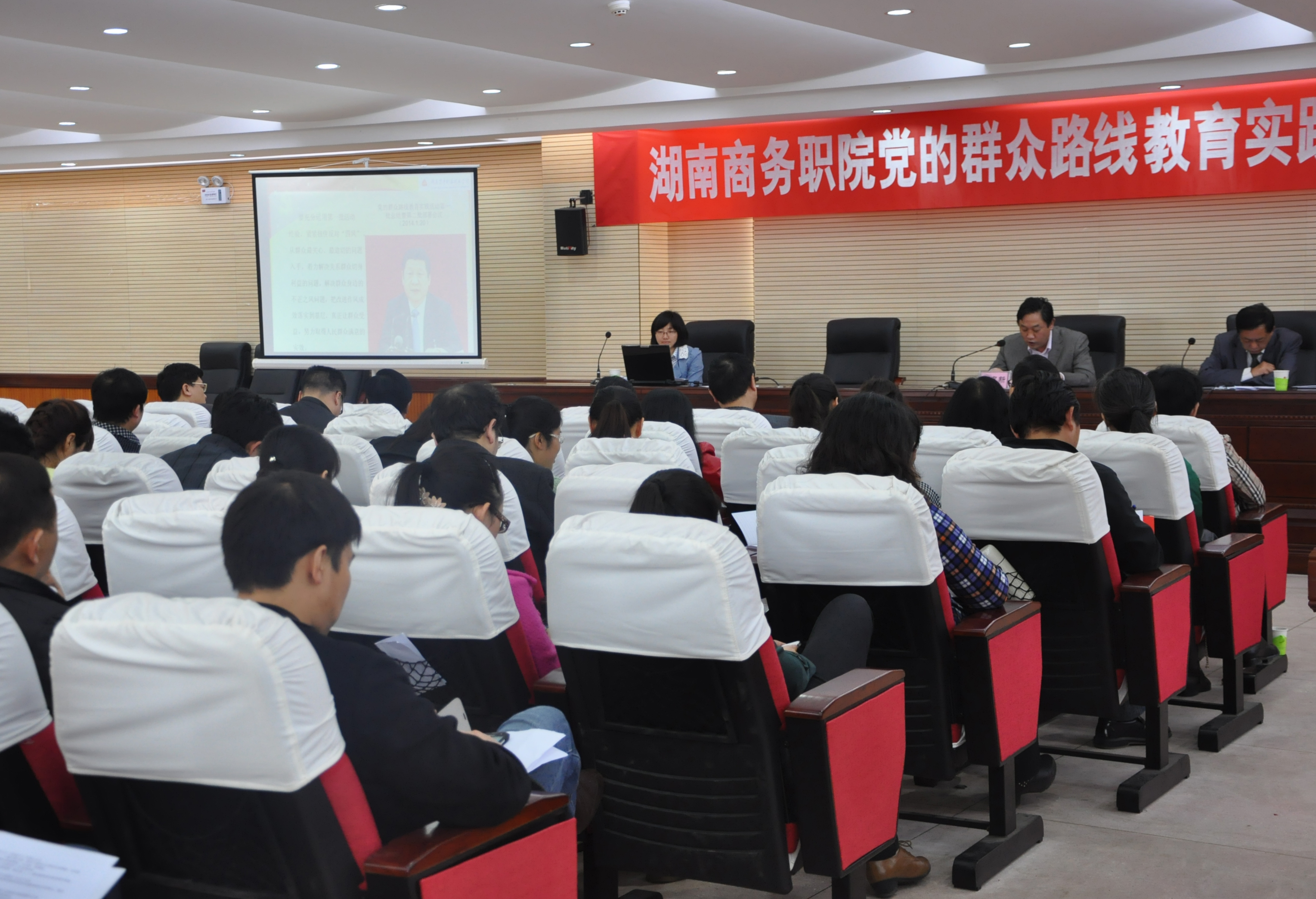 按照学院党的群众路线教育实践活动学习及活动安排,3月28号下午2:30,学院在办公楼六楼会议厅举行党的群众路线教育实践活动辅导报告会。党委书记周忠新担任主讲,学院全体院领导、中层干部及教职工党员、学生、离退休党员代表参加大会。学院党委副书记、院长孔军山主持报告会。