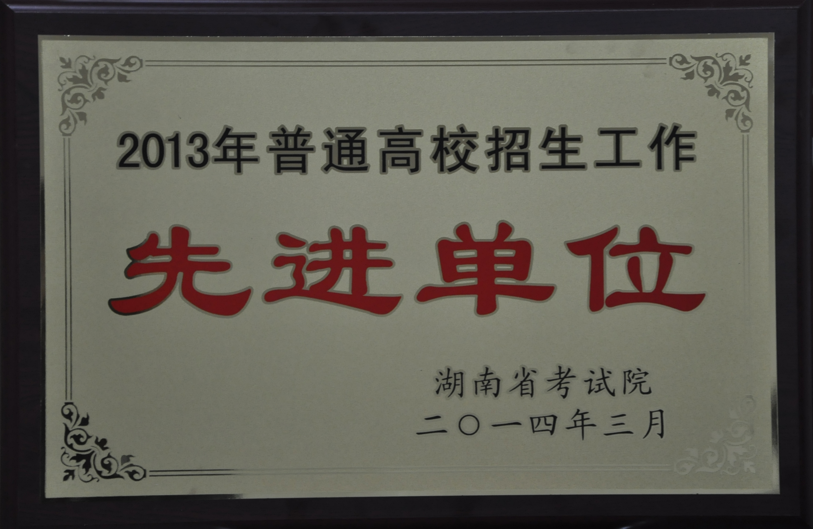 湖南教育考试院2013年度招生考试工作评估考核结果通报:我院再次被评为“在湘高等院校2013年招生考试工作先进单位”。