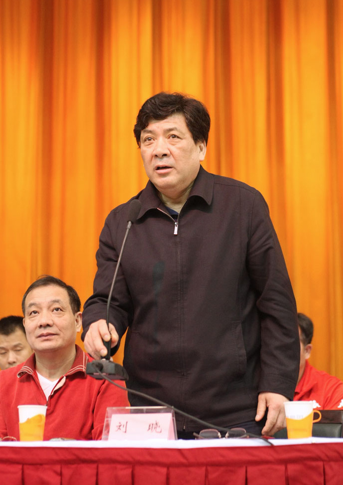 省政协副主席、省篮协名誉主席刘晓宣布本届篮球赛开幕