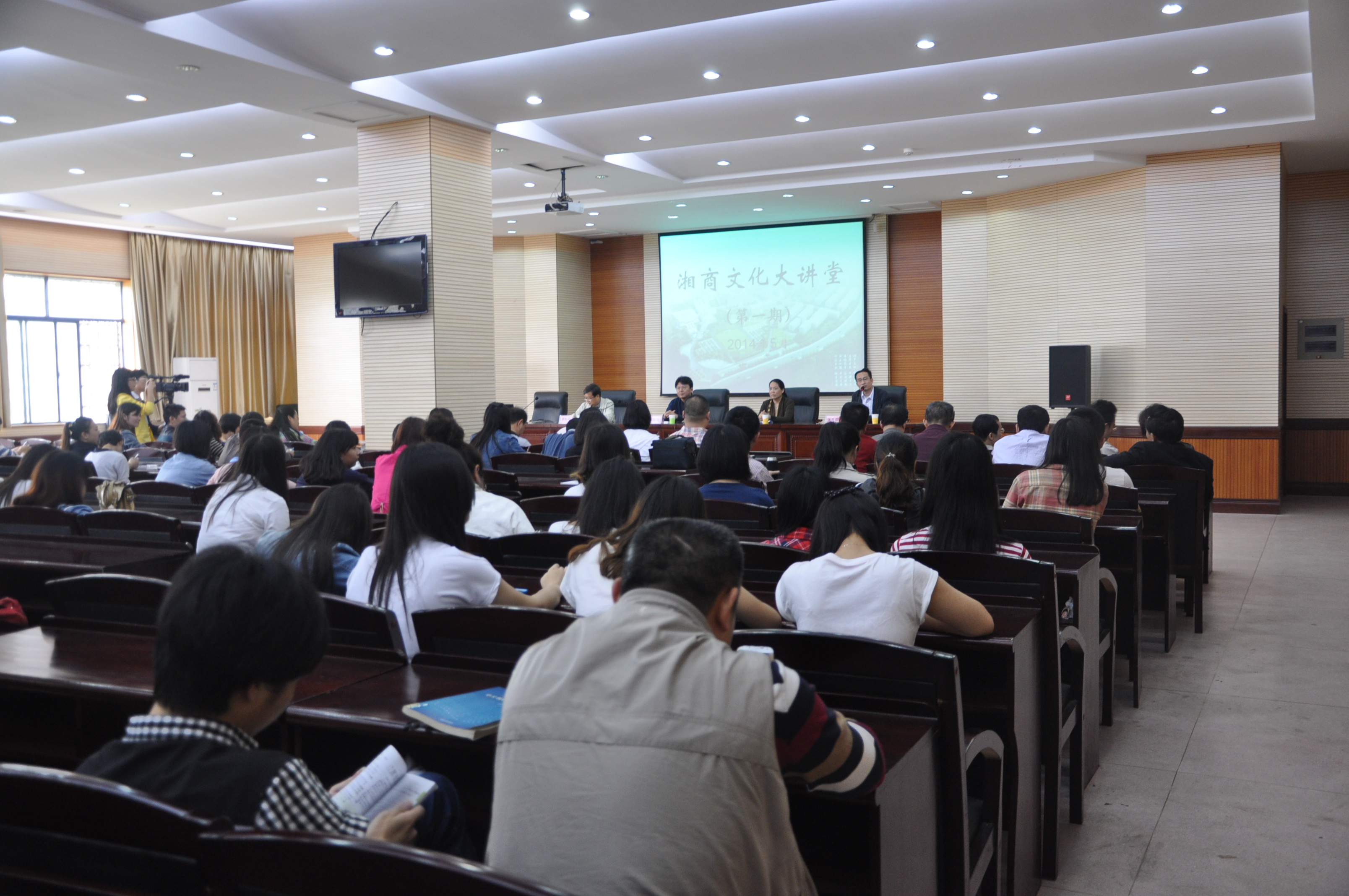 为弘扬湘商文化,传播湘商精神,由我院开办的“湘商文化大讲堂” 第一期讲座于5月22日14时30分在学院办公楼学术报告厅隆重开讲。学院特邀湘商文化首倡者、著名商会活动家伍继延先生担当主讲,并邀请法国高等社会科学学院语言文学博士、法国湖南商会会长文菲女士,“大三湘茶油”董事长周新平先生为演讲嘉宾。学院党委书记周忠新、院长孔军山等院领导、相关商会代表和学院师生到场聆听。讲座由湘商文化核心人物徐志频先生主持。