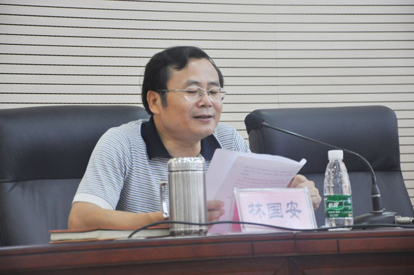 纪委书记、工会主席林国安宣读学院党委表彰文件