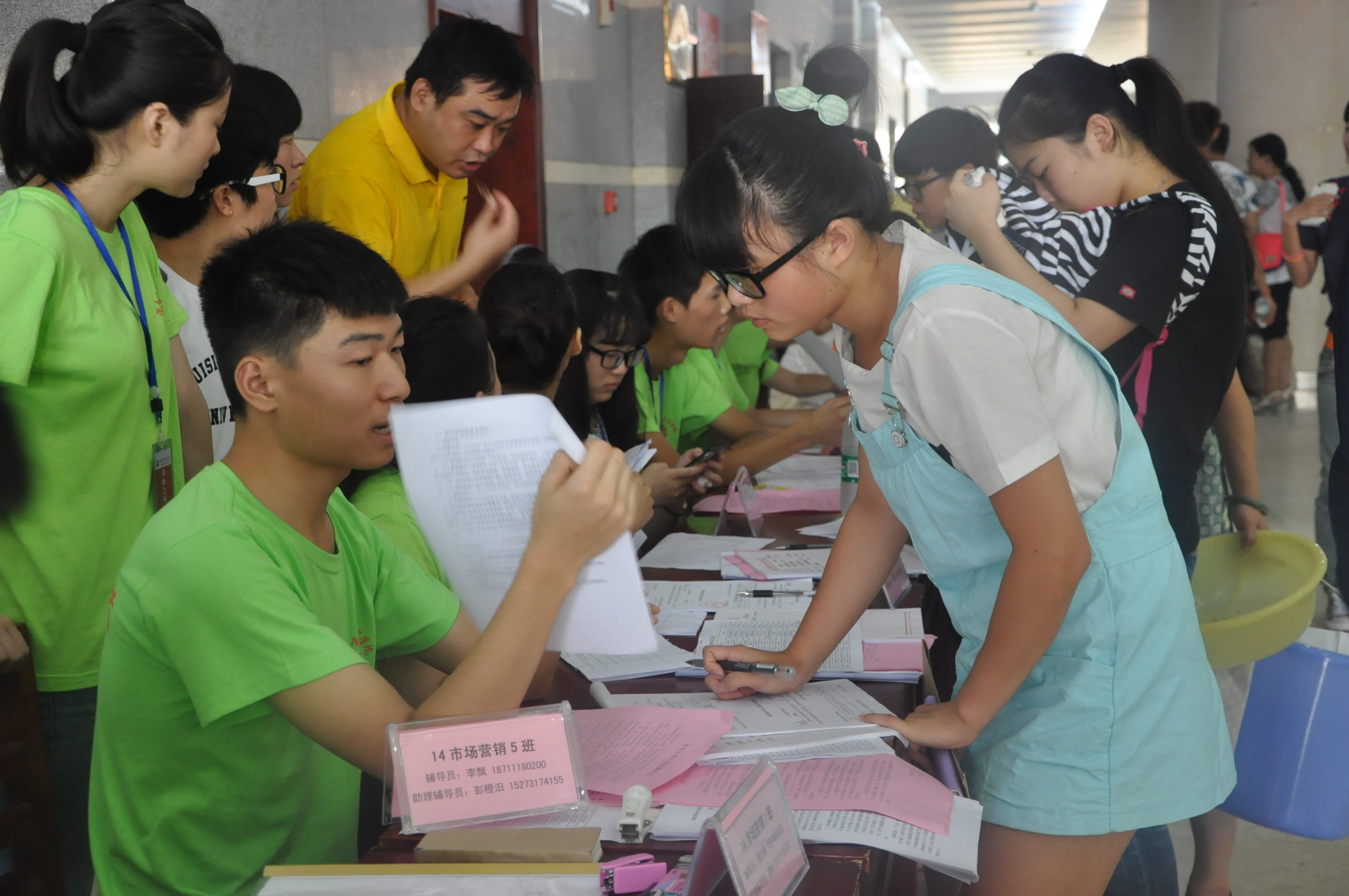 在报到大厅里,记者看到穿着嫩绿色T恤衫的自愿者们,匆匆穿梭于大厅的各个地方,她们热情地接待着每一位新生。亲切的言语、阳光般的笑脸、充满青春活力的嫩绿色T恤衫构成了商务职院迎接新生的一道极具特色而又十分靓眼的风景,给广大新生留下了美好的记忆。截止10日晚上9时,报到新生2988人,另有20名新生请假未到校,因此,学院今年招收新生可突破3000人,圆满地完成了招生任务。继去年、前年,今年学院招生工作再上新台阶。