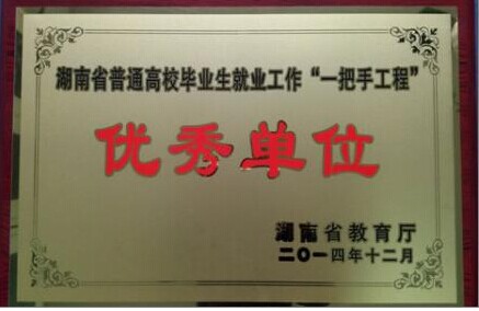 2014年,在学院党委和行政的正确领导和全体教师共同努力下,我院招生就业工作捷报频传,在湖南省教育厅组织的2014年湖南省普通高等学校毕业生就业工作“一把手工程”督查中,我院荣获2014年湖南省普通高等学校毕业生就业工作“一把手工程”优秀单位称号。