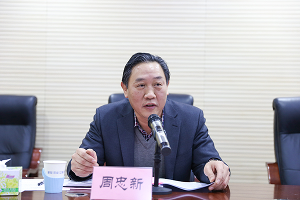 学院党委书记周忠新主持会议并发表讲话(图/蒋成龙)