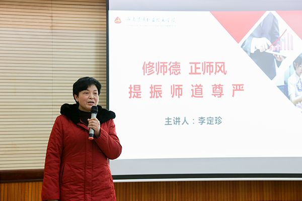 院长李定珍作了题为“修师德,正师风,提振师道尊严”的专题讲座(图/向卓)