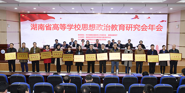 本次共有15所高?;衿?ldquo;2018年湖南省高校思想政治教育研究先进单位”,其中公办高职院校4所,共有45人被授予“2018年湖南省高校思想政治教育研究先进个人”。共评选出优秀论文39篇,优秀案例25篇,优秀专著6部。我校思政课部主任邓艳君荣获“2018年湖南省高校思想政治教育研究先进个人”,团委书记杨明撰写的论文《立德树人理念下高校学生资助体系构建研究》获评2018年度优秀论文。