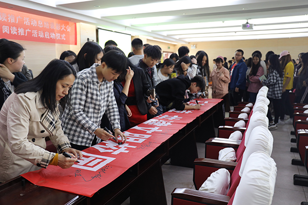 会上,禹明华对第一届“书香商务,浸润心灵”阅读推广活动进行总结并宣读表彰通报。她指出,我校对阅读推广工作十分重视,并打算深入开展阅读活动,培养同学们良好的读书习惯,在全校形成人人喜欢读书的良好风气。紧接着,对学??沟?ldquo;书香团支部”“阅读之星”评选活动获奖集体与个人进行表彰。