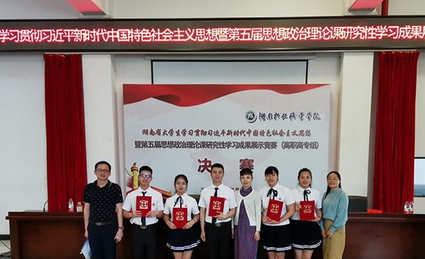 5月26日,湖南省大学生学习贯彻习近平新时代中国特色社会主义思想暨第五届大学生思想政治理论课研究性学习成果展示竞赛决赛在湖南科技职业技术学院落下帷幕。我院思政课部骆清、贺娟老师指导的研究性学习小组——18级茶艺与茶叶营销班何浩轩、稂盈盈、丁海燕、彭慧珍、张宁五位同学,以作品《习近平劳动思想对高职生实现青春梦的启示研究》进行了现场展示和精彩答辩,斩获高职高专组一等奖。