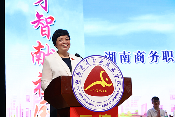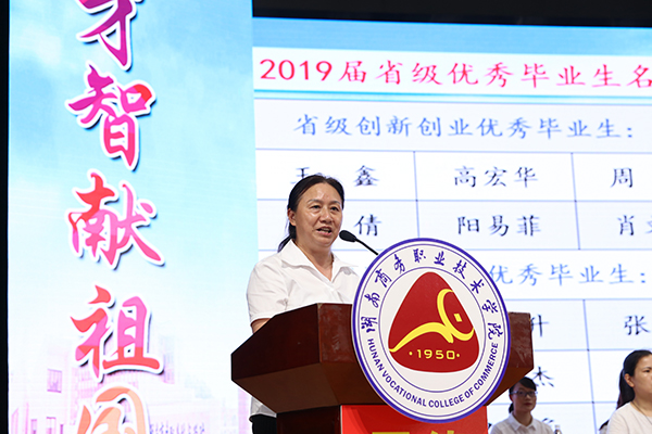 青春耀商务,才智献祖国。校长李定珍上台发表重要讲话,她对2019届毕业生圆满完成学业、即将踏上崭新征程表示衷心的祝愿。她指出,2019届毕业生在校期间积极参加技能竞赛、社会实践、社团活动、志愿服务,刻苦学习、砥砺奋进,在创新创业上崭露头角,在各类竞赛中频传佳音,2019届毕业生见证了学校的跨越式发展。三年里,学校拿下了国家“十三五”产教融合工程规划项目,立下3个省级一流专业特色群,获评湖南省创新创业文化基地,实现技能竞赛全国一等奖第一名的突破,成为卓越高职院校、省文明校园……