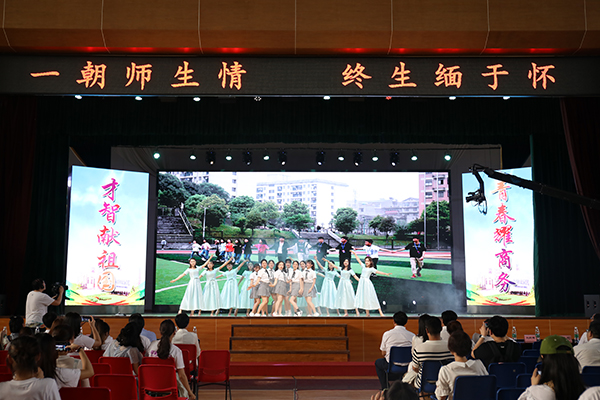 毕业典礼的各项议程完成之后,文艺表演在校舞蹈队带来的舞蹈《初心从未改变》中拉开序幕。舞者们在优美的音乐中翩翩起舞,让现场庄重的氛围转变为了欢乐的氛围;校园好声音优秀选手用铿锵有力的歌声为现场观众带来了歌曲《强国一代有我在》;宿管阿姨们也把对同学们的亲切关心和关照带上舞台,将毕业生们带进了满满的回忆中;辅导员们上演的舞台剧《祝?!方钣胪堑牡愕愕蔚斡帽硌莸男问皆俅慰袒?。最后,副校长廖良林与中层干部压轴出场,倾情歌曲演绎《阳光总在风雨后》,献给同学们作为毕业生礼物。