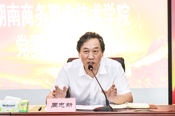 最后,周忠新书记发表总结讲话,从三个方面提出了要求。一是在常学常新,学深悟透上下功夫。习近平新时代中国特色社会主义思想,是马克思主义中国化最新成果,是党和人民实践经验和集体智慧的结晶,要组织全体教职员工认真读原著、学原文、悟原理,深入学习领会这一思想的核心要义、精神实质、丰富内涵,实践要求,切实增强学习的紧迫感、使命感。二是在系统全面,融合贯通上下功夫。深刻把握这一思想贯穿的马克思主义立场观点方法,把马克思主义哲学作为看家本领,坚持实事求是的问题导向,注重调查研究,切实提高科学思维能力,不断推动学校各项工作创新发展。三是在知行合一,学以致用上下功夫。要更加自觉用这一思想指导解决实际问题。当前,各部门都要按照双高标准,高职本科标准的要求对标建设,久久为功,切实抓出成效,为学校高质量发展作出积极贡献。