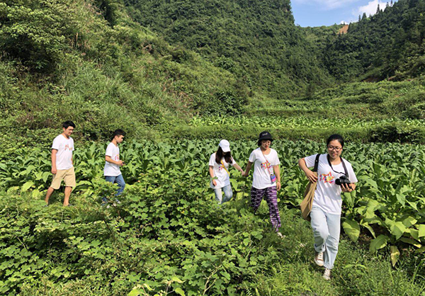 志愿者们通过走访农户,进行问卷调研,实地考察,得知了这里大部分村民家中青壮年常年在外打工,家中只有中老年及留守儿童,在国家精准扶贫的政策下,他们的生活水平得到了逐步的提高,并对国家优惠政策表示感激与满意。当地村民对于电商知识方面也是所有了解,如果条件充足的情况下他们是希望获得通过电商来发展自己的经济。同时,还了解到当地的黄金茶产业基地准备通过大户带动排大方村种植黄金茶,实现整村脱贫致富。看完茶园后,还一同参观了村里的烟草种植基地。每晚,志愿者们还开展了关爱留守儿童“大手牵小手”读书推荐会,他们将从城市带过来的“精神粮食”与小朋友们一起分享,希望通过读书推荐会能够给当地留守儿童带来新的认识,让孩子们领略阅读的乐趣,爱上读书,爱上学习。