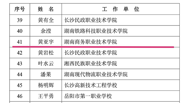 我校黄亚宇教授入选湖南省 2019 年度芙蓉教学名师