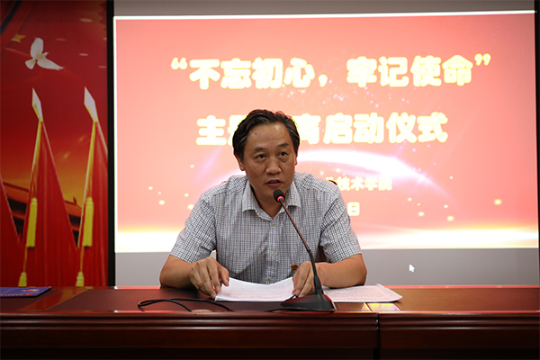 党委书记周忠新发表讲话,他说,开展“不忘初心 牢记使命”主题教育,是用习近平新时代中国特色社会主义思想武装全党的迫切需要,是推进新时代党的建设的迫切需要,是保持党同人民群众血肉联系的迫切需要,是实现党的十九大确定的目标任务的迫切需要。按照省委统一部署,我校作为第二批开展单位,要深刻领会主题教育指导思想,准确把握目标要求和工作安排,认真学习借鉴第一批主题教育成功经验,立足我校实践,以问题为导向,把学习教育、调查研究、检视问题、整改落实贯穿主题教育全过程,坚持高标准、严要求开展好主题教育,助推主题教育走深、走实,取得实效。